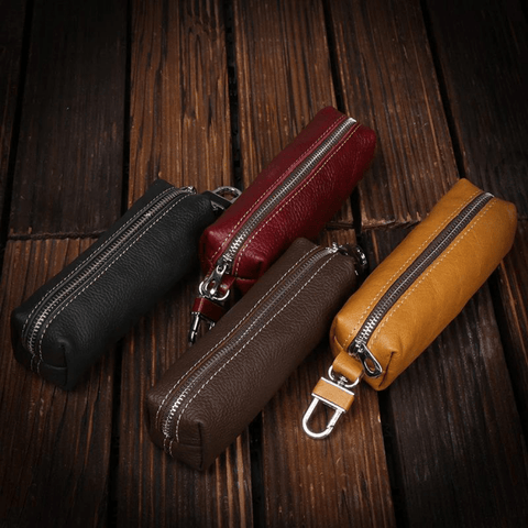 - With its sleek and sophisticated design, the Antonino Leather Keychain is the perfect choice for any man who wants to add a touch of style to his everyday carry. The key holder features a spacious pouch that can accommodate multiple keys, as well as a car key, house key, and more. The secure zippered closure ensures that your keys stay safe and secure, while the split key ring provides easy access when you need it.