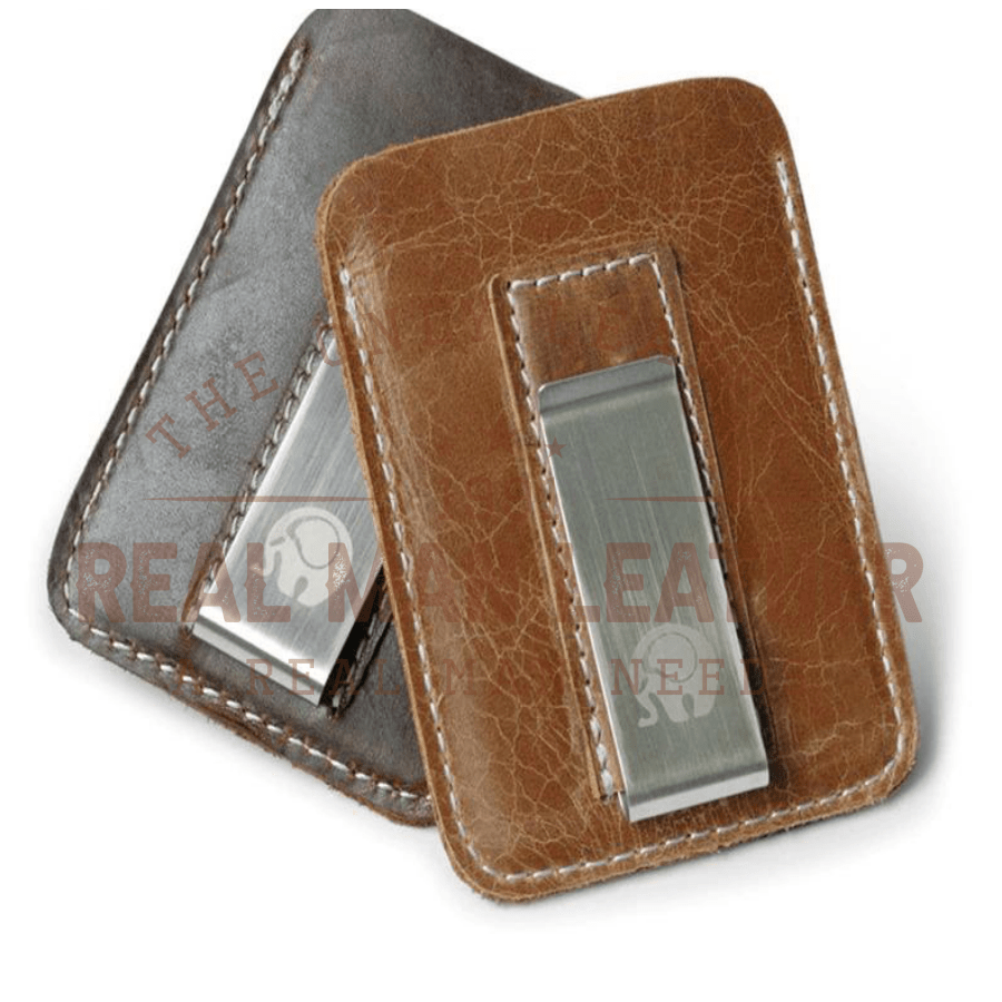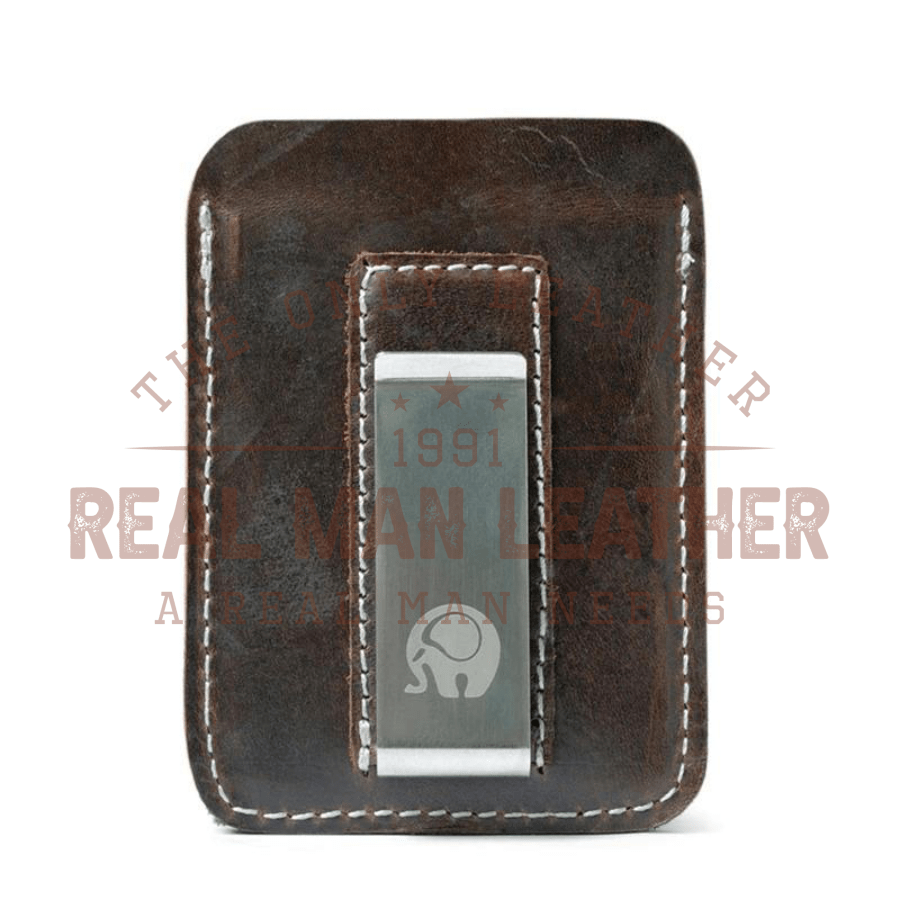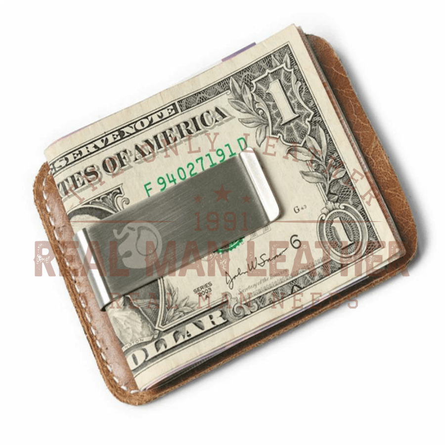- With the Bellone Leather Money Clip, you no longer have to worry about bulky and unorganized wallets. Its slim design and efficient money clamp make it the perfect accessory for those who value practicality and style.