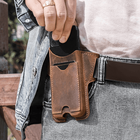 This Blaise Leather Phone Waist Belt Purse will allow you to reach your cellphone quickly! You never have to squeeze your cellphones in your pockets again! Get rid of that ugly pocket bulge now! Made of real leather, it is water-resistant and scratch-resistant, and will be able to last for a long time! Needless to say, this is also an EXCELLENT gift idea for yourself and your loved ones! Comes in Coffee and Black Color.