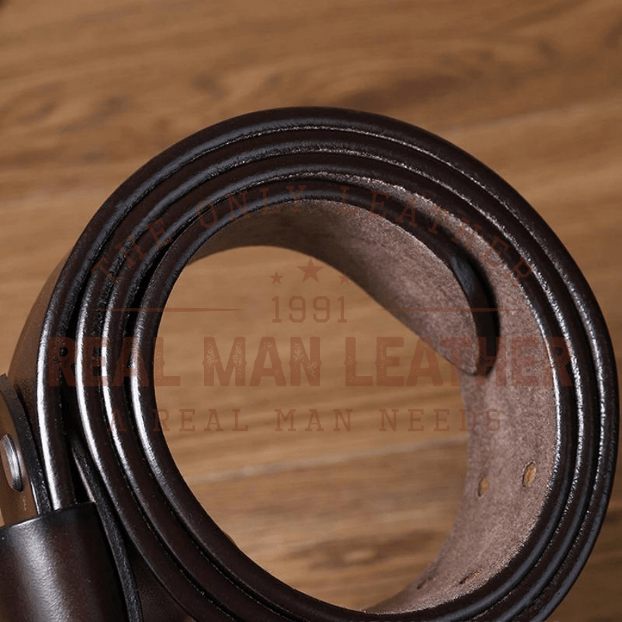 - Made from the finest quality cow leather, this belt is durable and designed to withstand the test of time. The genuine leather material not only adds a touch of luxury but also ensures that the belt is resistant to wear and tear.