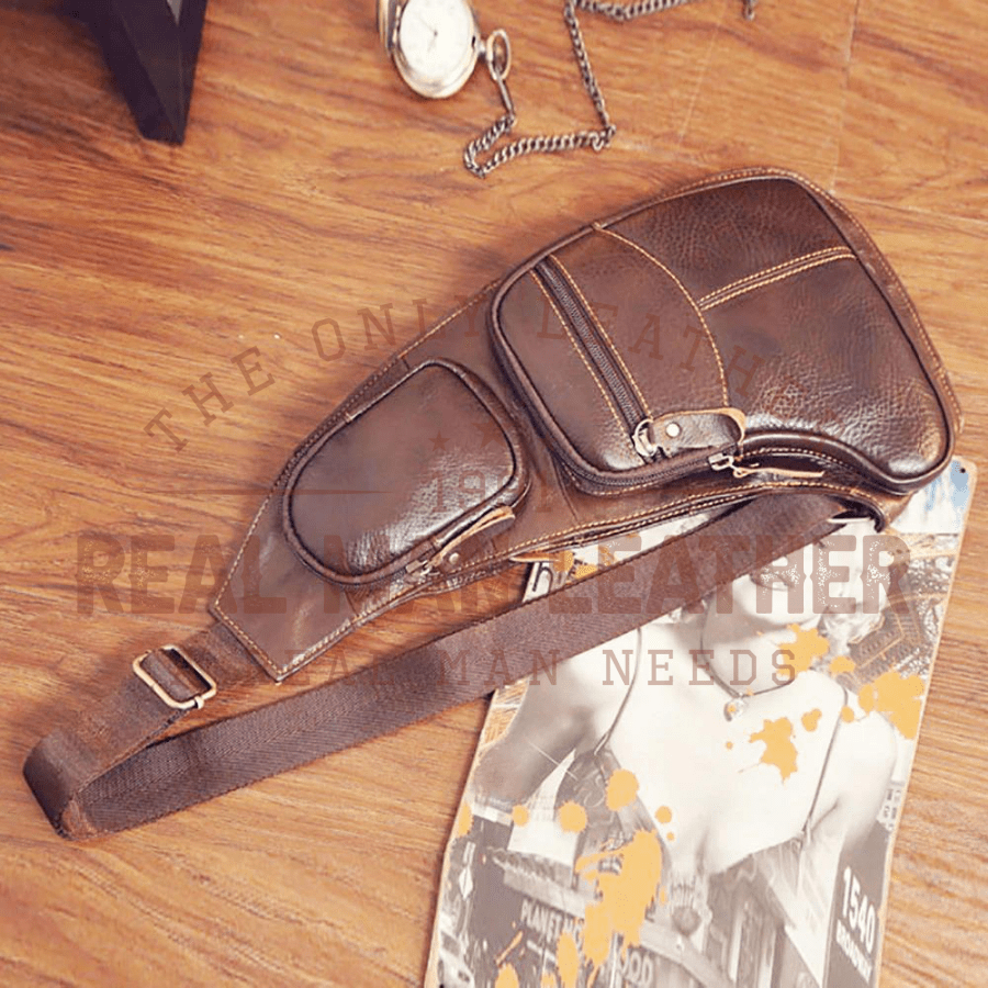 Upgrade your style with the Pirozzi Leather Vintage Sling Chest Bag, a fashionable accessory perfect for the modern man. A stylish and functional accessory perfect for the modern man on the go. This sling bag is made from genuine leather and boasts a vintage-inspired design that exudes elegance and sophistication.