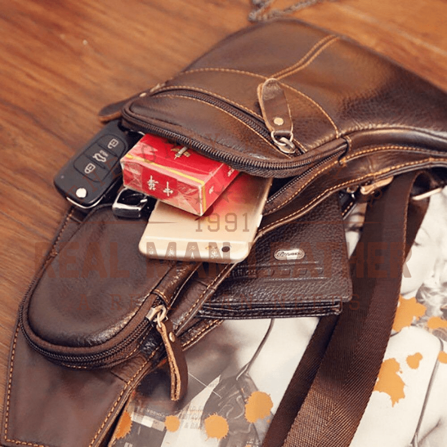 Genuine Leather: Crafted from high-quality leather, this sling bag is durable and long-lasting. The natural leather material ensures that each bag is unique, with its own distinct markings and grain patterns.