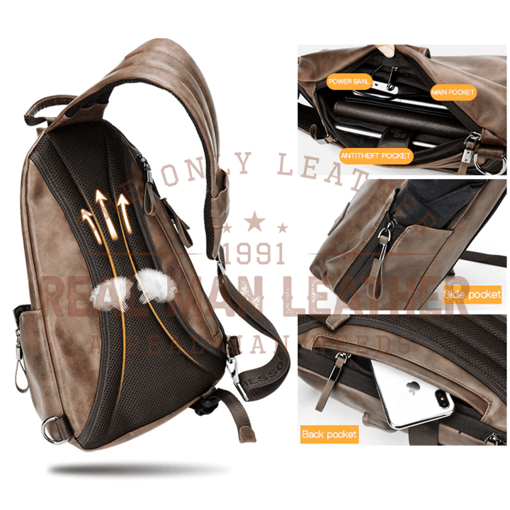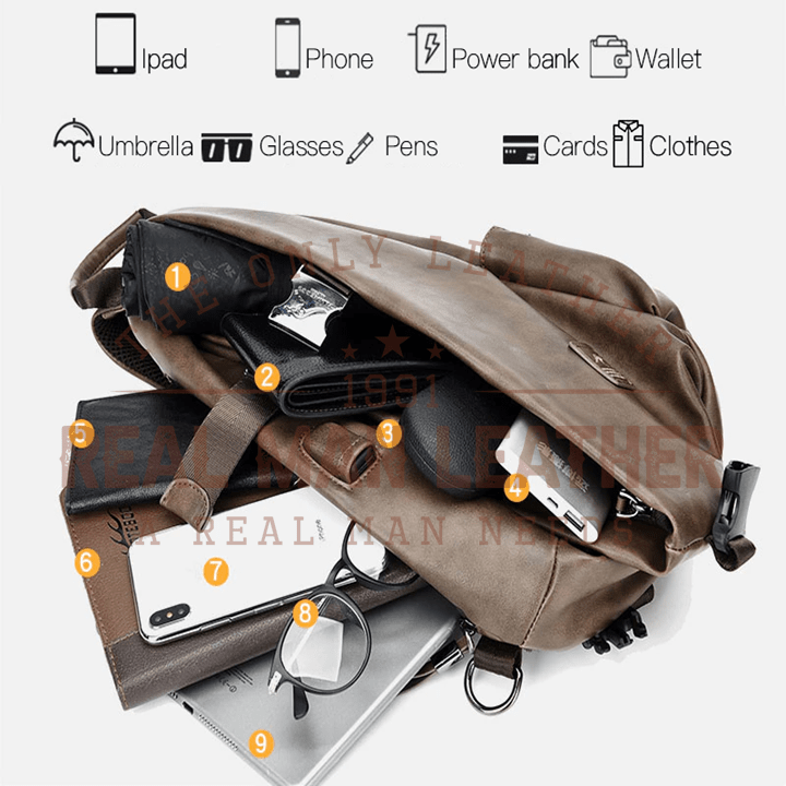 This Riche Leather USB Charging Crossbody Bag is PERFECT in every way! Handmade and with real leather, this crossbody bag is strong and tough and is able to carry a heavy load without breaking. Its aesthetically pleasing outlook and user-friendly design make it a wonderful gift idea!